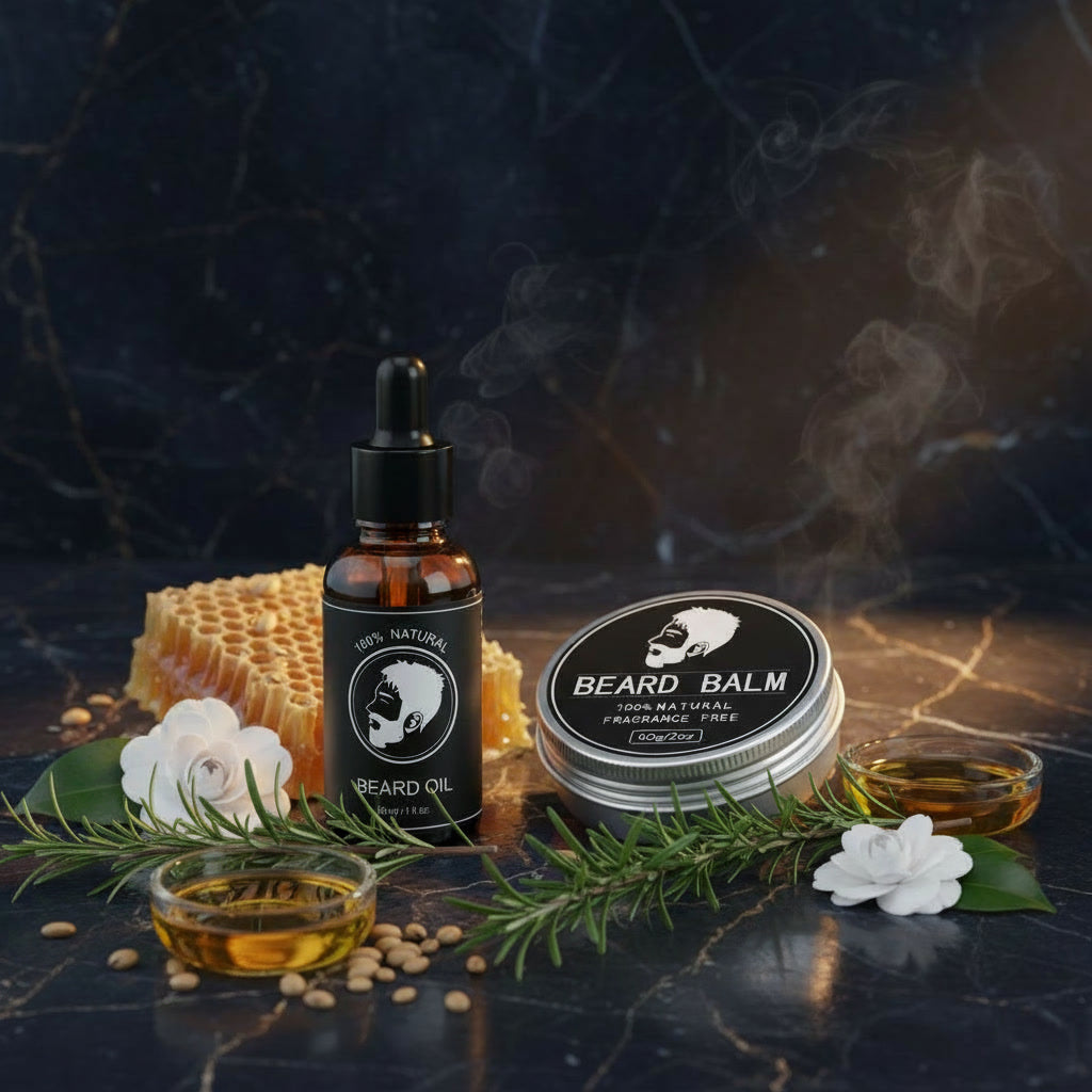 Our collection includes a nourishing beard oil and styling balm, both formulated with 100% natural ingredients.
